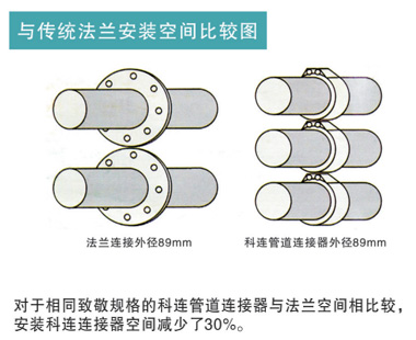 本公司設(shè) 計的管道連接器 、管道修補(bǔ)器具有 :代替法蘭 、快速連接 、免動火 、施工簡單 、效率高 、節(jié)省空間 、 降低成本 、 針對不同介質(zhì)不同材質(zhì)的管道連
